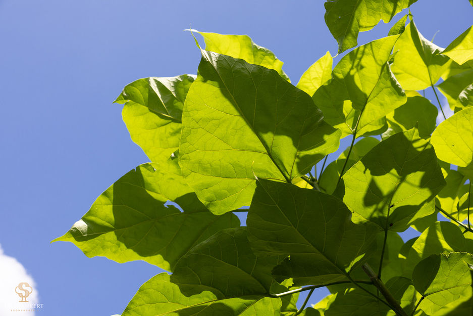 De ondiep gegroefde grijsbruine schors schilfert af in plaatjes. Vanaf mei tot juli zijn mooie witte klokvormige bloemen in opstaande pluimen te zien. In de herfst kleuren de bladeren geel en de peulen blijven gedurende de winter aan de boom hangen.