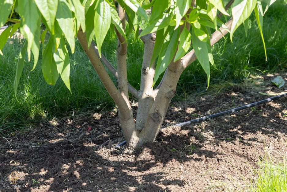 Vanaf juni tot augustus ontstaat er een opvallende bloei van orchidee-achtige lichtroze zoet geurende bloemen. Het doffe donkergroene langwerpige blad verkleurt geel in de herfst.