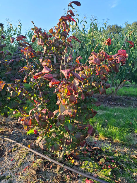 Vanaf sept.-okt. kleuren de vruchten purperrood. De herfstkleur is spectaculair wijnrood. De hoogte na 10 jaar is 250-300 cm. Deze plant is zeer winterhard.