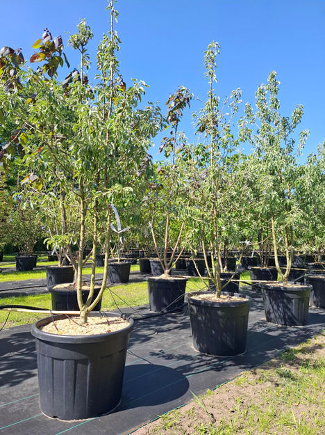 De sneeuwpeer is een kleine solitair. Hij heeft viltige, lichtgrijze twijgen die later net zo donker worden als de stam. Hij bloeit in het voorjaar met helderwitte bloemen en geeft in de nazomer geelgroene vruchten. Het jonge blad is ook viltig en behaard. Daarna verkleurt de bovenzijde naar frisgroen terwijl de onderkant van het blad behaard blijft. De boom heeft een donkerrode herfstkleur.